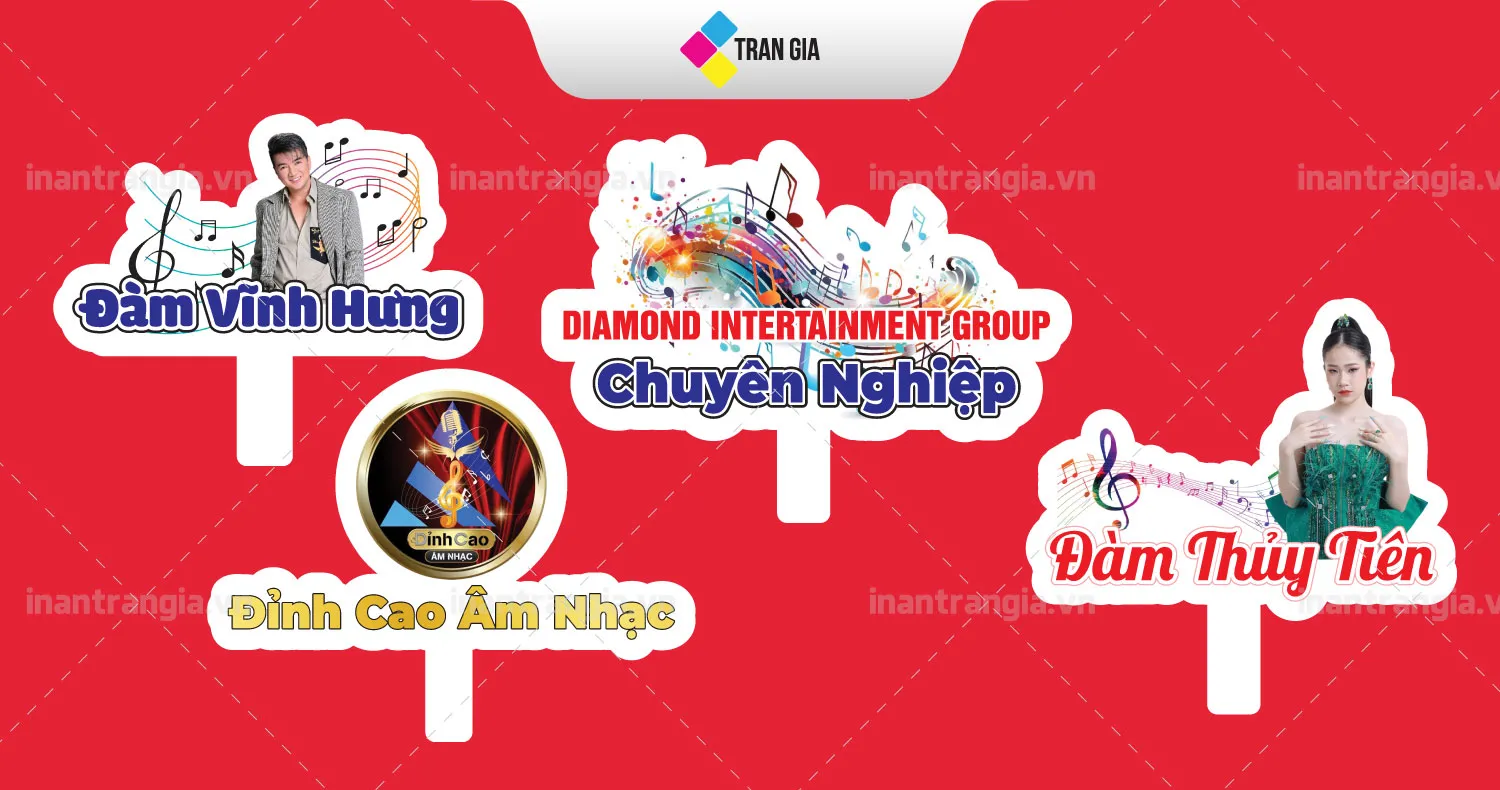 - In Ấn Trần Gia cung cấp hashtag cầm tay với nhiều chất liệu: giấy cứng cao cấp, mica, foam,... Tùy vào nhu cầu và ngân sách, bạn có thể lựa chọn chất liệu phù hợp.