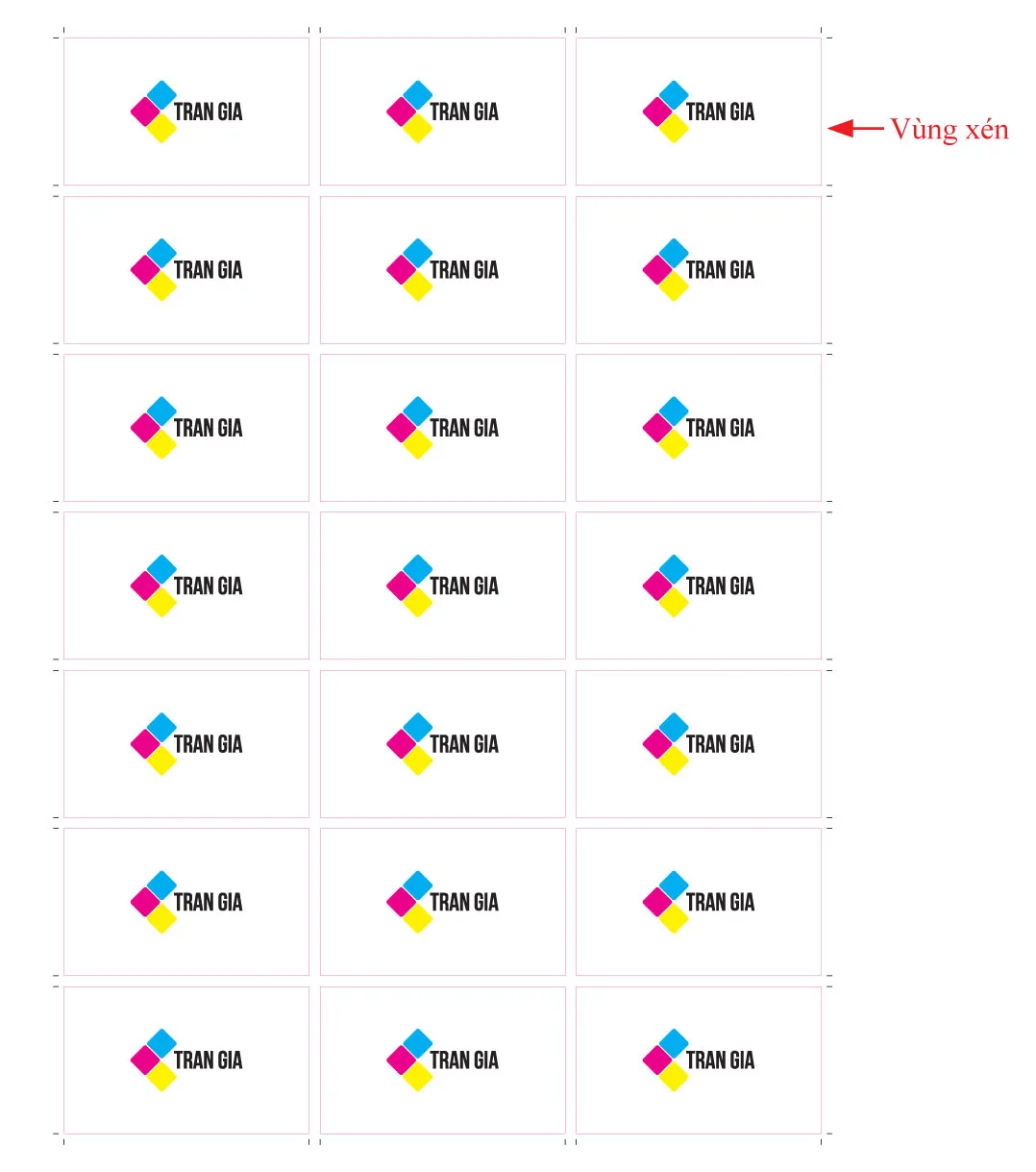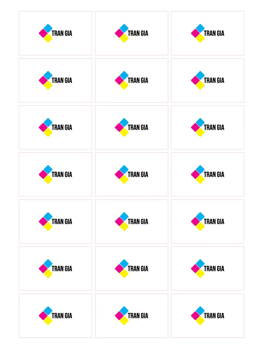 Đây là hình ảnh quen thuộc: một file dàn trang tem nhãn, name card... với bon xén tạo bằng công cụ mặc định. Chúng dính chùm vào nhau, không có khoảng cách, không có bù xén, trông thật lộn xộn và không thể dùng để cắt xén chính xác.